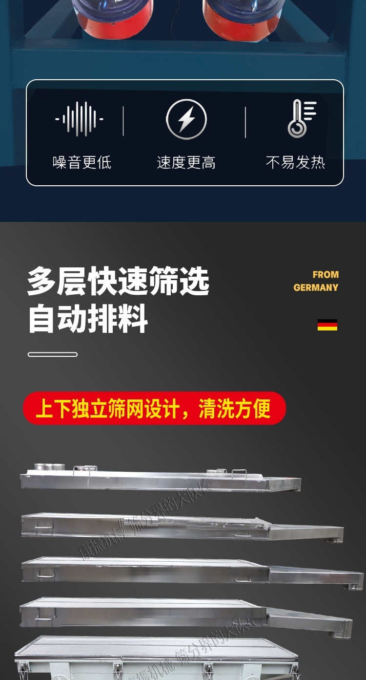 是以利用振動電機激振作為振動源,使物料在篩網(wǎng)上被拋起,同時受力向前做直線規(guī)則運動,物料從給料機均勻地進入篩分機的進料口,通過多層篩網(wǎng)產(chǎn)生數(shù)種規(guī)格的篩上物、篩下物、從各自的出口排出。具有耗能低、產(chǎn)量高、結構簡單、易維修、全封閉結構,無粉塵溢散,自動排料, 更適合于高產(chǎn)能流水線作業(yè)。